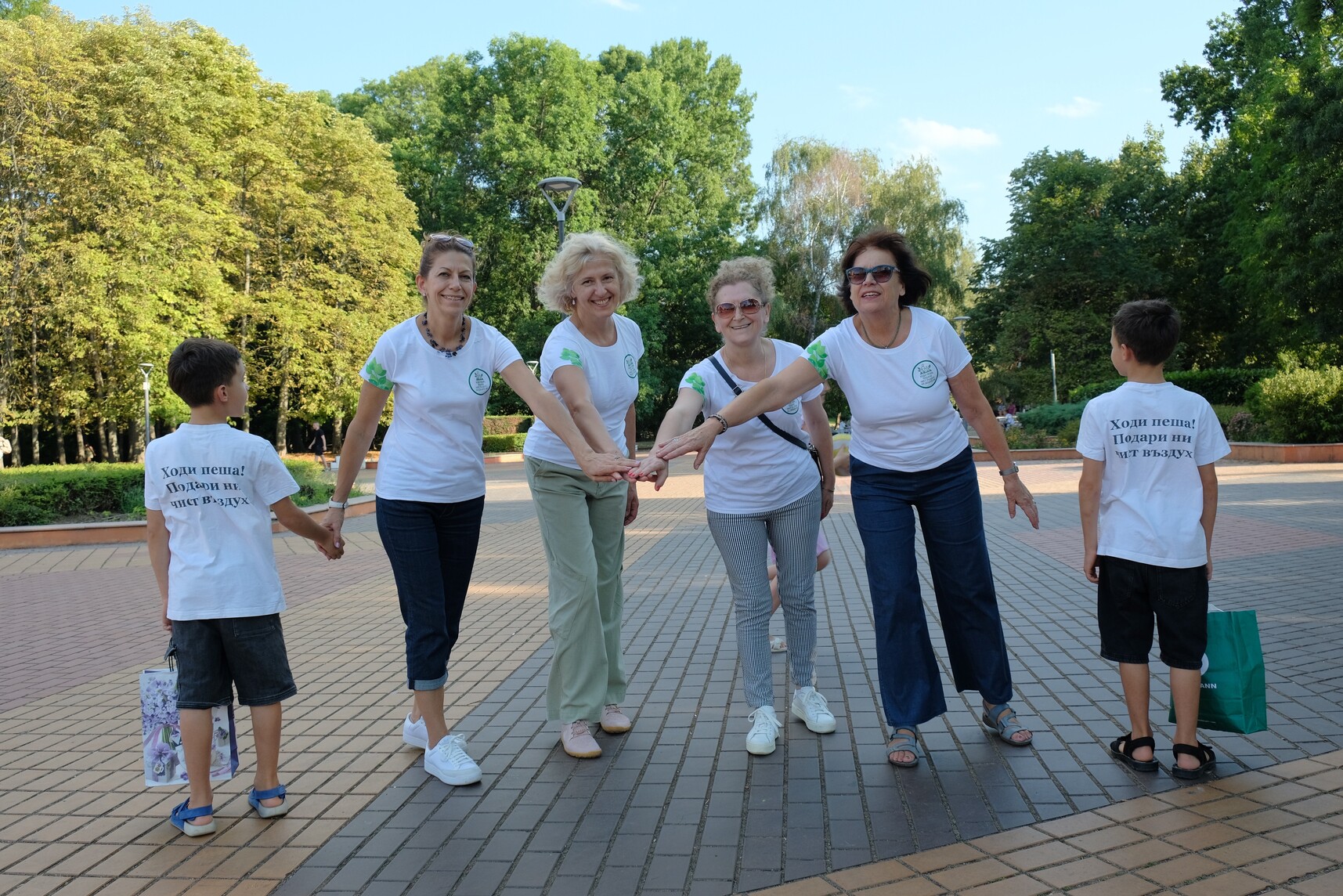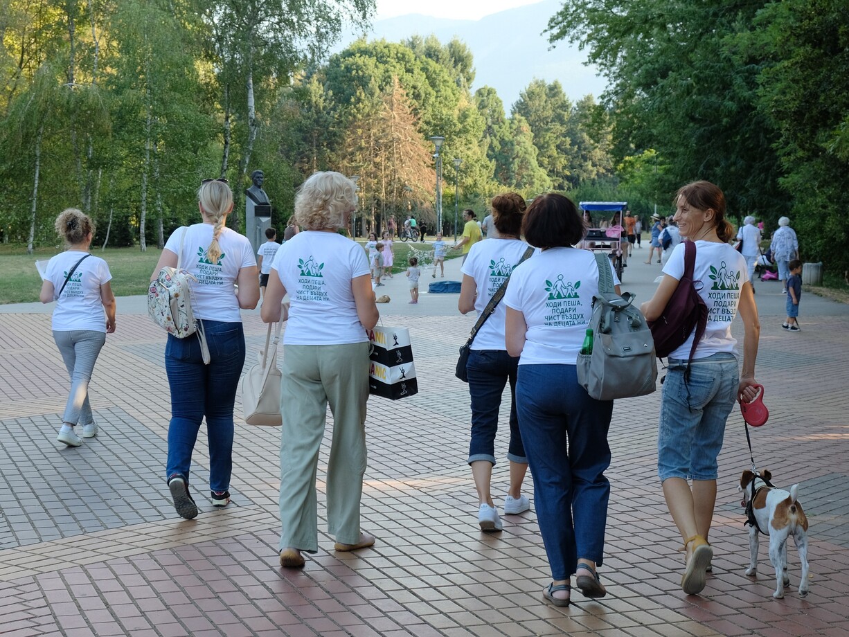 Две деца поведоха първото шествие на инициативата "Ходи пеша, подари чист въздух на децата ни". С чиста душа и вяра във хората раздаваха флаери за да станем повече, за да станем много. И когато сме много ще бъдем силни за да променим първо себе си и след това всичко около нас. Две деца ни повярваха, че можем да им подарим по-чист въздух, а това е голяма отговорност. Ще ни повярват още деца и ние ще повярваме още повече в себе си. Всеки от нас има своята мисия на тази земя, но само заедно можем да променим най-значимите неща -- да живеем в мир и хармония, да запазим Земята чиста и да ѝ подарим Бъдеще! Нашето бъдеще са нашите деца, това на което ще ги научим и това което ще им завещаем. Нека им завещаем борбеност, смелост, динамика, чистота, споделеност и вяра, че заедно можем много повече! Ние и децата ни можем!